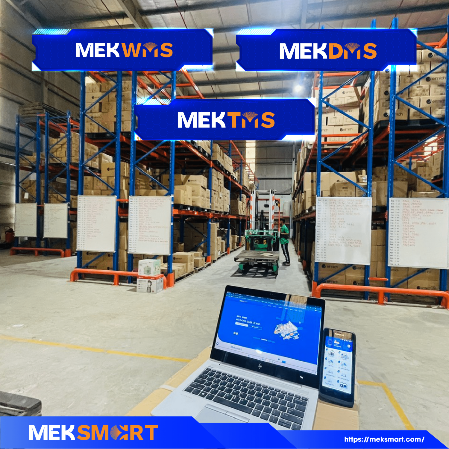 -Hệ thống quản lý kho vận: MEKWMS - giúp các doanh nghiệp tự động hóa quá trình nhập, xuất và kiểm kê hàng hóa, giảm thiểu lỗi thủ công, tối ưu hóa không gian lưu trữ và tăng tốc độ xử lý đơn hàng.